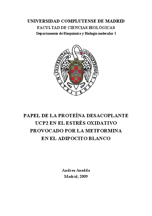 Pdf Papel De La Proteina Desacoplante Ucp2 En El Estres Oxidativo Provocado Por La Metformina En El Adipocito Blanco Alessia Salino Academia Edu