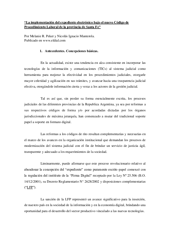 Pdf La Implementacion Del Expediente Electronico Bajo El Nuevo Codigo De Procedimiento Laboral De La Provincia De Santa Fe Nicolas Ignacio Manterola Academia Edu