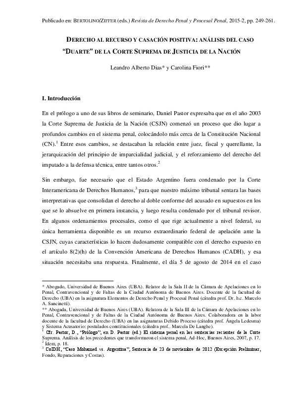 Pdf Derecho Al Recurso Y Casacion Positiva Analisis Del Caso Duarte De La Corte Suprema De Justicia De La Nacion Leandro Dias And Carolina Fiori Academia Edu